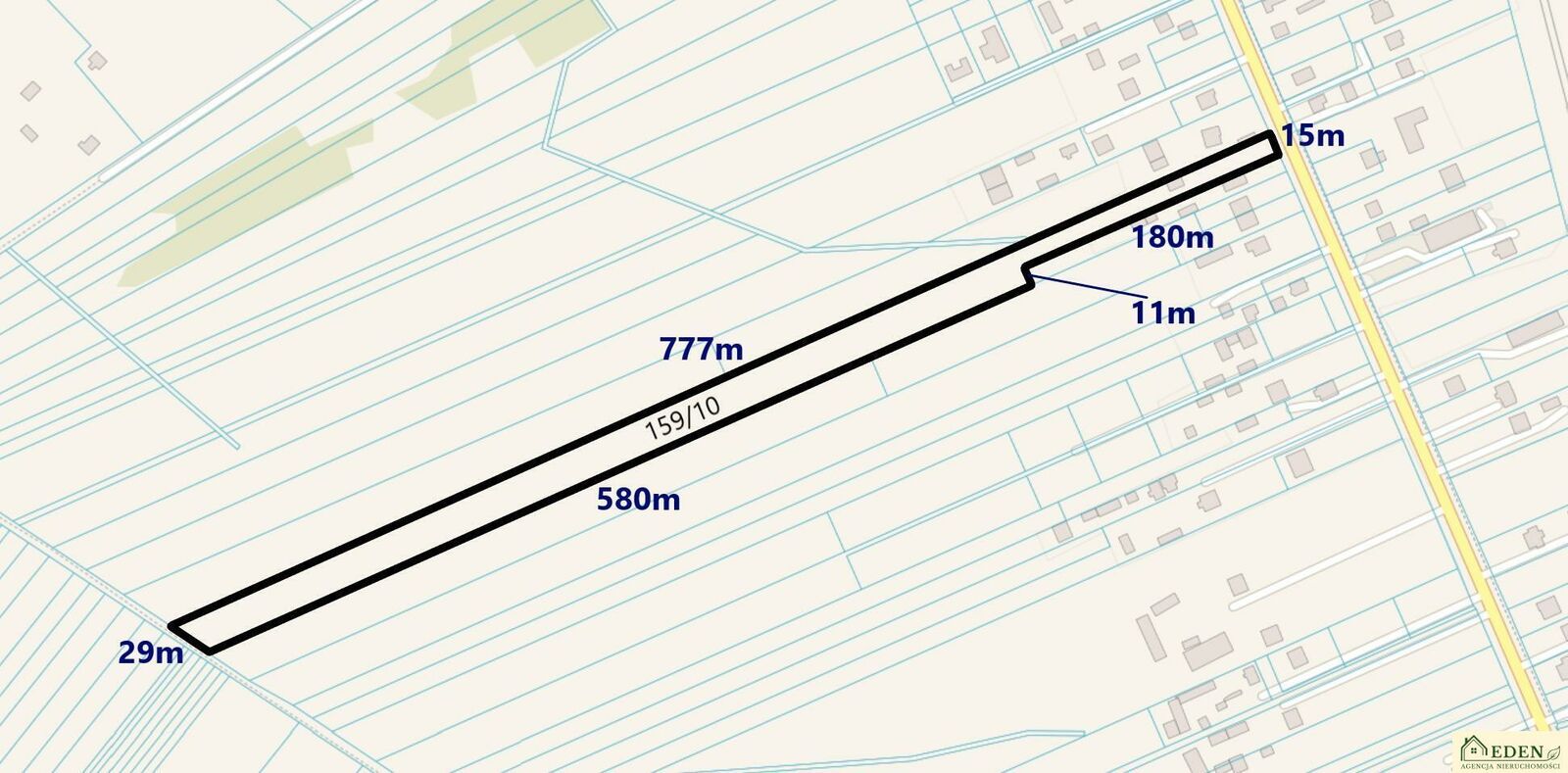 Całość położona jest na działce nr 159/10, której przednia część o powierzchni około 34 arów przeznaczona jest w miejscowym planie zagospodarowania przestrzennego pod zabudowę mieszkaniową jednorodzinną z usługami i zabudowę zagrodową. Pozostała część działki to grunty rolne (klasa RV), które mogą zostać wykorzystane na uprawy, rekreację lub przyszłe inwestycje.