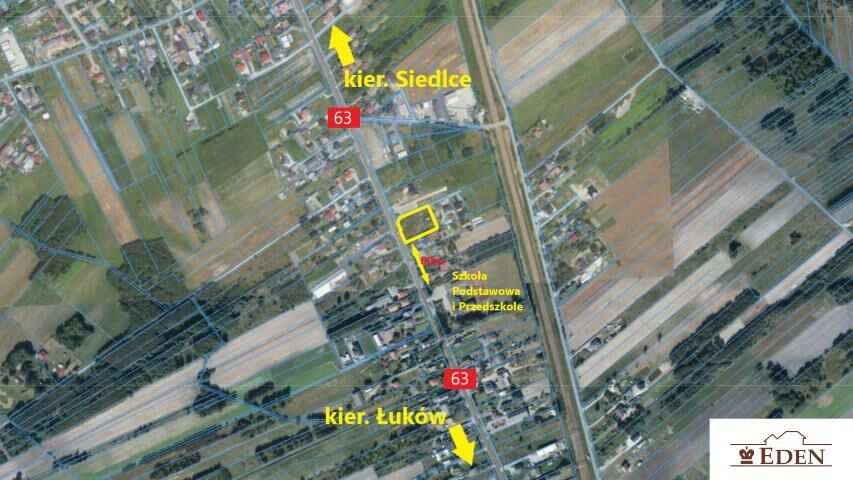 Położona jest przy drodze krajowej nr 63 (Łuków - Siedlce) z możliwością wjazdu z dwóch stron, od głównej ulicy i z drogi wewnętrznej w której nowy właściciel nabywa także udział i staje się jej współwłaścicielem.