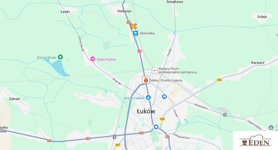 Odległość do miast: Łuków 3 km, Siedlce 25 km, Lublin 95 km, Terespol 95 km, Warszawa 110 km.
