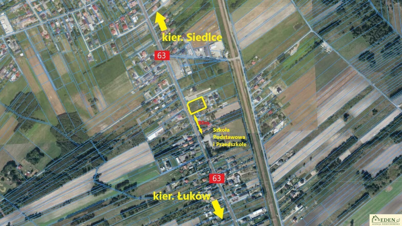 Położona jest przy drodze krajowej nr 63 (Łuków - Siedlce) z możliwością wjazdu z dwóch stron, od głównej ulicy i z drogi wewnętrznej w której nowy właściciel nabywa także udział i staje się jej współwłaścicielem.