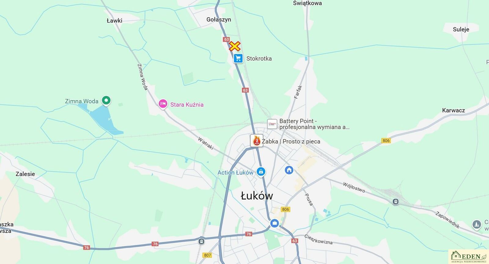 Odległość do miast: Łuków 3 km, Siedlce 25 km, Lublin 95 km, Terespol 95 km, Warszawa 110 km.