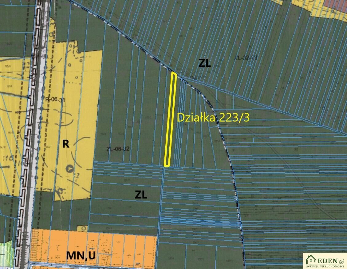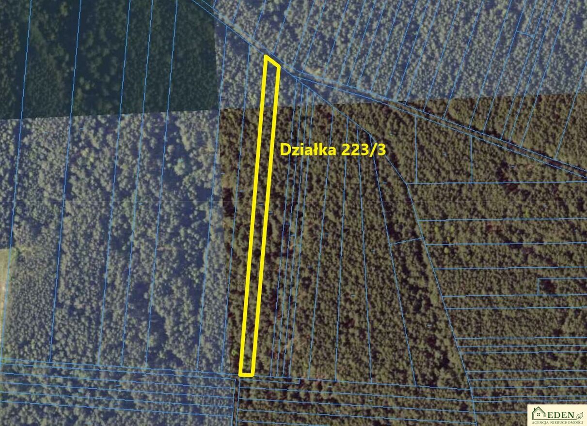 Uzupełnieniem oferty jest działka nr 223/3 o powierzchni 0,2811 ha i wymiarach ok. 10,5 m x 265 m, w całości oznaczona w MPZP symbolem Ls teren lasu. Położona w sąsiedztwie kompleksu leśnego, z dojazdem drogą gminną, stanowi idealne zaplecze rekreacyjne, miejsce pozyskania drewna lub naturalne rozszerzenie areału inwestycyjnego.
